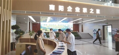 近日,調(diào)研組走進(jìn)南陽(yáng)市企業(yè)服務(wù)中心。這座毗鄰南陽(yáng)行政審批服務(wù)中心的建筑物恢弘大氣、設(shè)施完備、環(huán)境溫馨。南陽(yáng)市企業(yè)服務(wù)中心建筑面積1.2萬(wàn)平方米,是中部地區(qū)最大的企業(yè)服務(wù)實(shí)體大廳。該中心以“全賦能、心服務(wù)”為核心理念,設(shè)訴求響應(yīng)、中介服務(wù)、企業(yè)家素質(zhì)提升和精品展示四大功能區(qū),通過(guò)“一網(wǎng)六部一講堂”為主架構(gòu)的線(xiàn)上線(xiàn)下聯(lián)動(dòng)機(jī)制,為企業(yè)提供全生命周期呵護(hù)、全鏈條體系支持、全需求要素保障、全方位素質(zhì)提升、全市場(chǎng)主體覆蓋、全流程精準(zhǔn)服務(wù)的六全一站式服務(wù)。