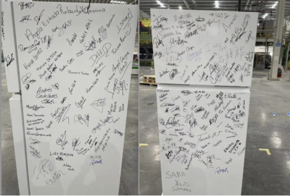 大家看到的這張照片,是今年8月19日,海信遠(yuǎn)在墨西哥的蒙特雷家電產(chǎn)業(yè)園下線的第一臺(tái)冰箱,這上面密密麻麻簽下了200多個(gè)由漢語、英語、西班牙語和韓語簽名,這些簽名來自于把原本一片荒涼的土地建設(shè)成占地達(dá)380畝的現(xiàn)代化制造工廠的建設(shè)者以及合作伙伴們,一個(gè)又一個(gè)的簽名代表著他們對(duì)產(chǎn)品質(zhì)量的確認(rèn)、對(duì)消費(fèi)者的承諾。蒙特雷工廠是海信全球29家制造基地中的一個(gè),也是最艱難的一個(gè),一年多來,我的同事們克服疫情、水源短缺與惡劣環(huán)境的影響,最終在一片一無所有的沙土地上高效完成了新工廠建設(shè)。目前這個(gè)制造基地已經(jīng)量產(chǎn)冰箱和烤爐產(chǎn)品,這將加速海信對(duì)北美和加勒比海地區(qū)市場(chǎng)的拓展。蒙特雷工廠的建設(shè)者,也讓我想起了2019年,為解決海信位于墨西哥蒂華納電視工廠的新項(xiàng)目施工試產(chǎn),我的同事白劍鋒帶領(lǐng)團(tuán)隊(duì)租住在工廠對(duì)面,確保24小時(shí)“隨叫隨到”,當(dāng)?shù)貙懼?4小時(shí)營(yíng)業(yè)的便利店實(shí)際也只服務(wù)18個(gè)小時(shí),而海信員工卻始終做到24小時(shí)隨時(shí)待命支持項(xiàng)目,這種極度的勤奮與敬業(yè),就連工廠門衛(wèi)都忍不住感嘆“中國(guó)人太crazy”。