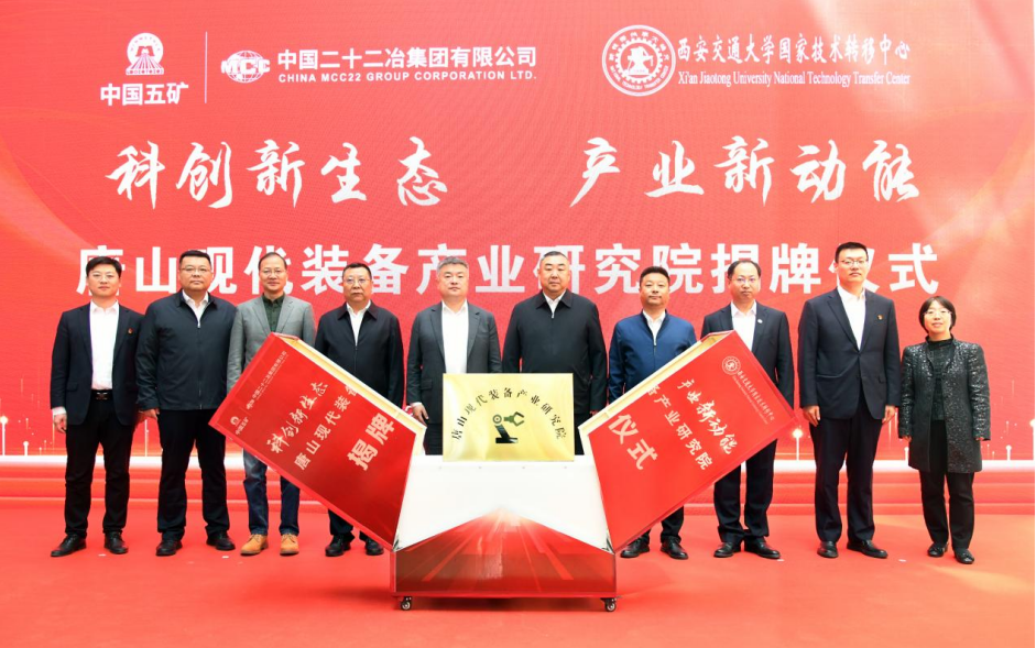 4月18日上午,中國二十二冶集團(tuán)與西安交通大學(xué)共同聯(lián)合創(chuàng)建的唐山現(xiàn)代裝備產(chǎn)業(yè)研究院揭牌儀式在中國二十二冶中冶重工唐山公司舉行。唐山市工業(yè)和信息化局副局長賀川、高新區(qū)管委會副主任武昌明,西安交通大學(xué)國家技術(shù)轉(zhuǎn)移中心主任王文,中國二十二冶集團(tuán)有限公司副總經(jīng)理韓冰出席活動,賀川、武昌明致賀詞,賀川、武昌明、王文、韓冰為唐山現(xiàn)代裝備產(chǎn)業(yè)研究院揭牌。中國二十二冶集團(tuán)有限公司副總工程師慈國強(qiáng)主持會議。