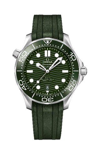 這款海馬系列300米潛水表搭配綠色波紋表盤。表殼為42毫米,采用精鋼材質(zhì)打造,經(jīng)拋光和拉絲處理,搭配單向旋轉(zhuǎn)拋光綠色陶瓷表圈,飾以由“大明火”工藝制成的白色琺瑯潛水刻度,12點(diǎn)位設(shè)有覆以Super-LumiNova夜光涂層的圓點(diǎn),在暗黑環(huán)境中呈現(xiàn)以綠色效果。旋入式表背經(jīng)拋光和拉絲工藝打磨,飾有波紋邊緣,透過藍(lán)寶石玻璃表背,可以欣賞到歐米茄8800至臻天文臺機(jī)芯的運(yùn)轉(zhuǎn)美態(tài)。對于喜愛運(yùn)動風(fēng)格的人士而言,腕表搭配一體式綠色橡膠表帶,更便于運(yùn)動佩戴。