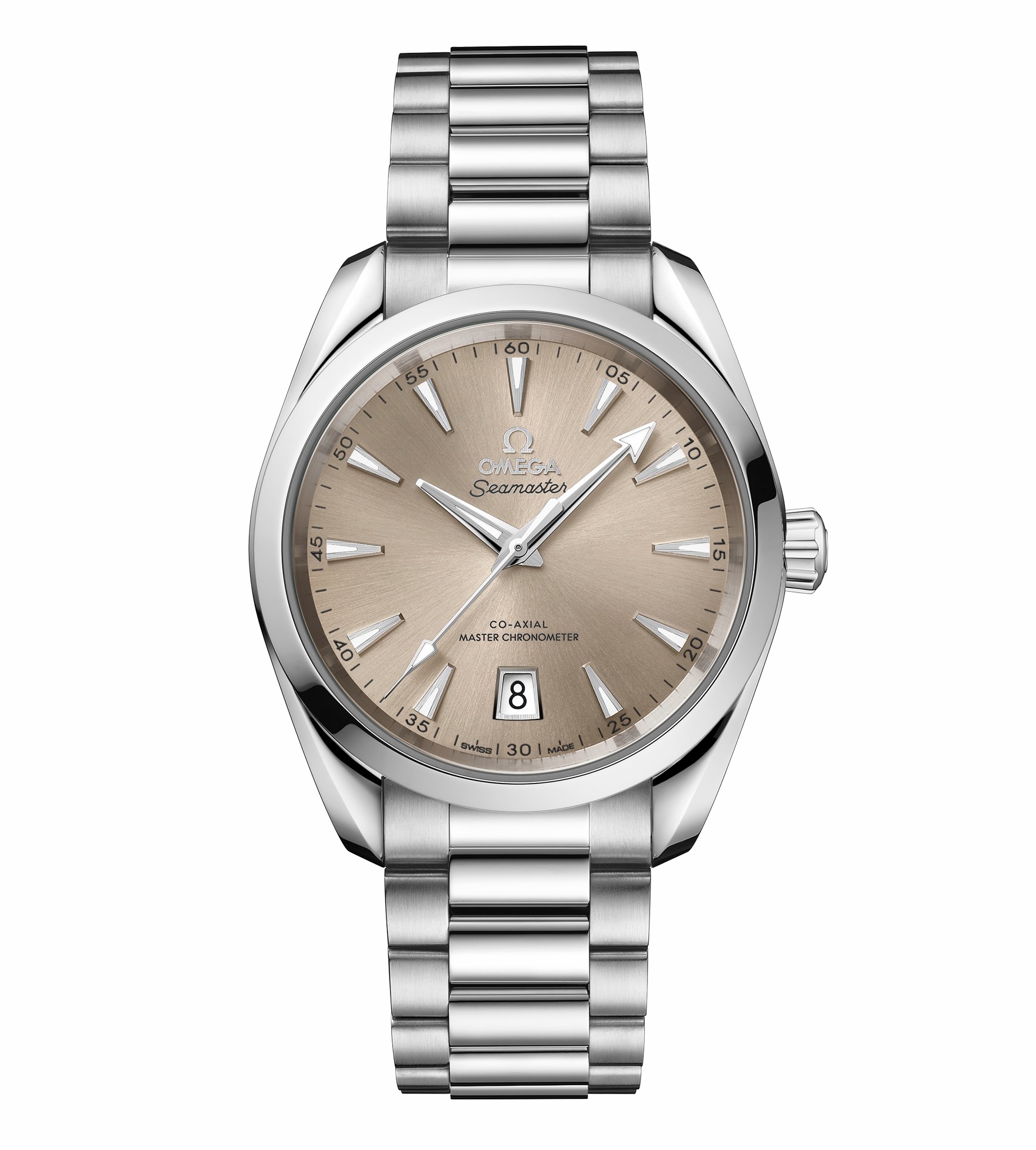 海馬系列 Aqua Terra 150米38毫米至臻天文臺(tái)表采用對(duì)稱設(shè)計(jì),表殼和表冠均以拋光精鋼材質(zhì)打造,表背采用波紋邊緣設(shè)計(jì)。6點(diǎn)位設(shè)有日歷窗,鍍銠指針和小時(shí)刻度均覆有白色 Super-LumiNova 夜光涂層。不銹鋼表鏈采用精美的圓弧形鏈節(jié),經(jīng)拋光和拉絲處理。內(nèi)部搭載歐米茄8800至臻天文臺(tái)機(jī)芯,通過由瑞士聯(lián)邦計(jì)量研究院(METAS)核準(zhǔn)的至臻天文臺(tái)認(rèn)證,其精準(zhǔn)度、防磁性和整體性能均達(dá)到行業(yè)的更高標(biāo)準(zhǔn)。其表盤由黃銅制成,經(jīng)過漆面處理,由中央向四周呈現(xiàn)出太陽(yáng)射線的打磨效果。各種色彩中,橘黃色古典氣息十足,雅致而沉穩(wěn)。砂巖色樸實(shí)無(wú)華,屬于低調(diào)而休閑的實(shí)力派。