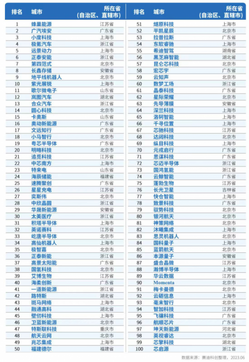 表1 賽迪科創(chuàng)獨(dú)角獸百強(qiáng)(2023)