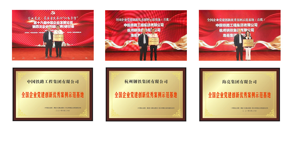 為了更加深入的推廣優(yōu)秀案例企業(yè)的黨建經(jīng)驗(yàn),發(fā)揮榜樣的示范作用,促進(jìn)優(yōu)秀案例企業(yè)之間相互學(xué)習(xí)、考察、交流,共同推動(dòng)企業(yè)黨建創(chuàng)新發(fā)展,全國(guó)企業(yè)黨建創(chuàng)新優(yōu)秀案例征集活動(dòng)組委會(huì)在本屆200家優(yōu)秀案例企業(yè)中,開(kāi)展了“全國(guó)企業(yè)黨建創(chuàng)新優(yōu)秀案例示范基地”征集和申報(bào)工作。在各企業(yè)黨委申報(bào)的基礎(chǔ)上經(jīng)過(guò)審查和考核,決定首批授予中國(guó)鐵路工程集團(tuán)有限公司、杭州鋼鐵集團(tuán)有限公司、海亮集團(tuán)有限公司“全國(guó)企業(yè)黨建創(chuàng)新優(yōu)秀案例示范基地”稱號(hào)。